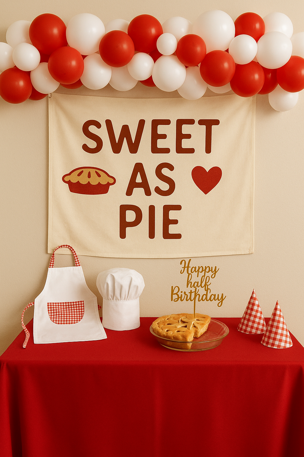 Gingham tablecloth, pie cutouts, little rolling pin props.
