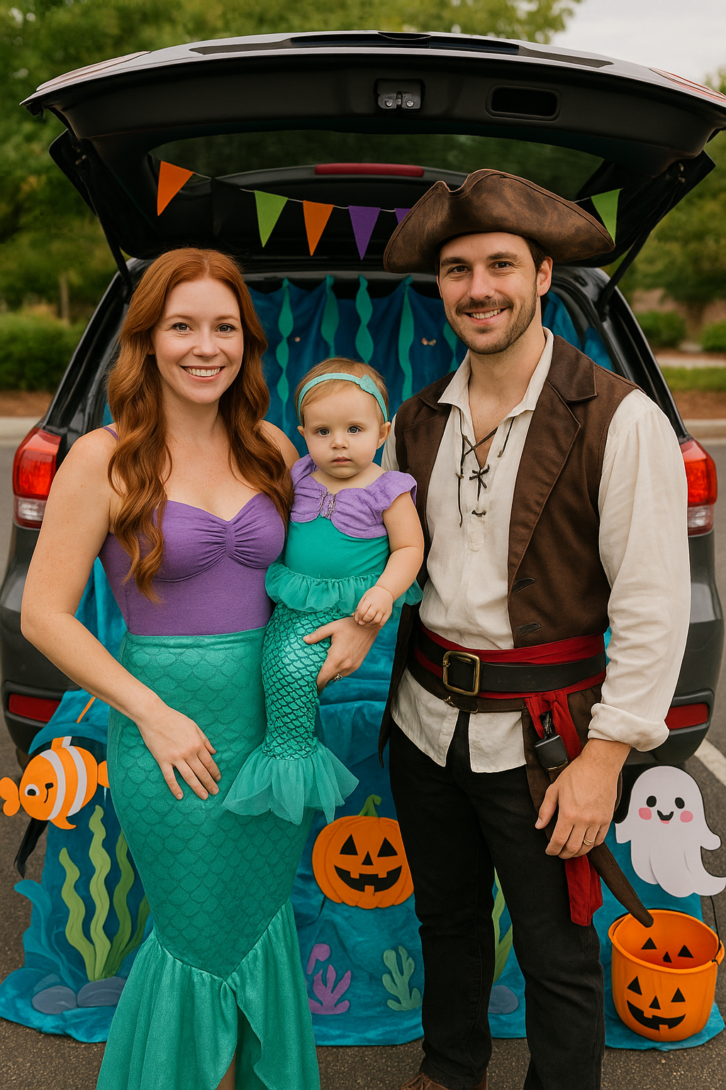 If you love the Little Mermaid and Pirates of the Caribbean this is the family costume theme for you.